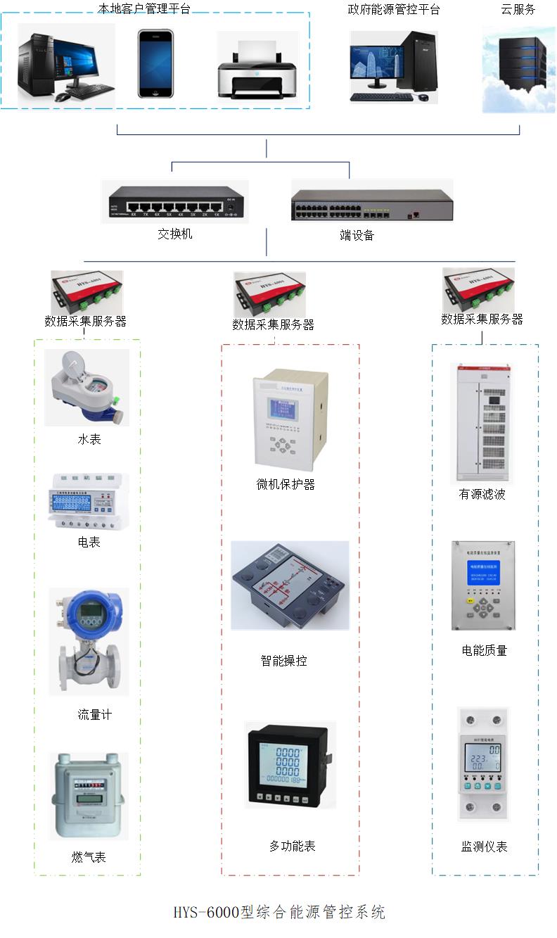 1. HYS-6000综合能源管控系统是解决用户端能源管理分析系统,对水、气、煤、油、电、热(冷)量等集中采集与分析,通过对用户端所有能耗进行细分和统计,以直观的数据和图表向管理人员或决策层展示各类能源的使用消耗情况,便于找出高耗能点或不合理的耗能习惯,有效节约能源,为用户进一步节能改造或设备升级提供准确的数据支撑。